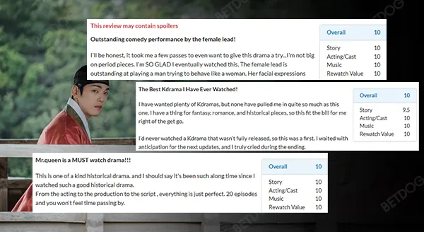 ตอบคำถาม Mr.Queen สนุกไหม ? หากเพื่อน ๆ กำลังมองหาซีรีส์แนวโรแมนติก-คอมเมดี้ ที่พ่วงมาด้วยเกร็ดความรู้เล็ก ๆ ในประวัติศาสตร์เกาหลี ที่มีเรตติ้งทะลุ 2 หลักในเวลาไม่กี่สัปดาห์ เรื่องนี้เหมาะที่จะดูเพื่อความสนุกแบบ 10/10