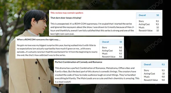 ซึ่งเป็นซีรีส์แนวโรแมนติก-คอมเมดี้ ความยาว 12 ตอน ตอนละประมาณ 70 นาที ที่สร้างความประทับใจให้กับผู้ชมได้อย่างต่อเนื่อง ด้วยเรตติ้งในสัปดาห์ที่ 3 เฉลี่ยทั่วประเทศอยู่ที่ 4.967% หรือคิดเป็นจำนวนผู้ชมสูงสุด 1.043 ล้านคน [2]
